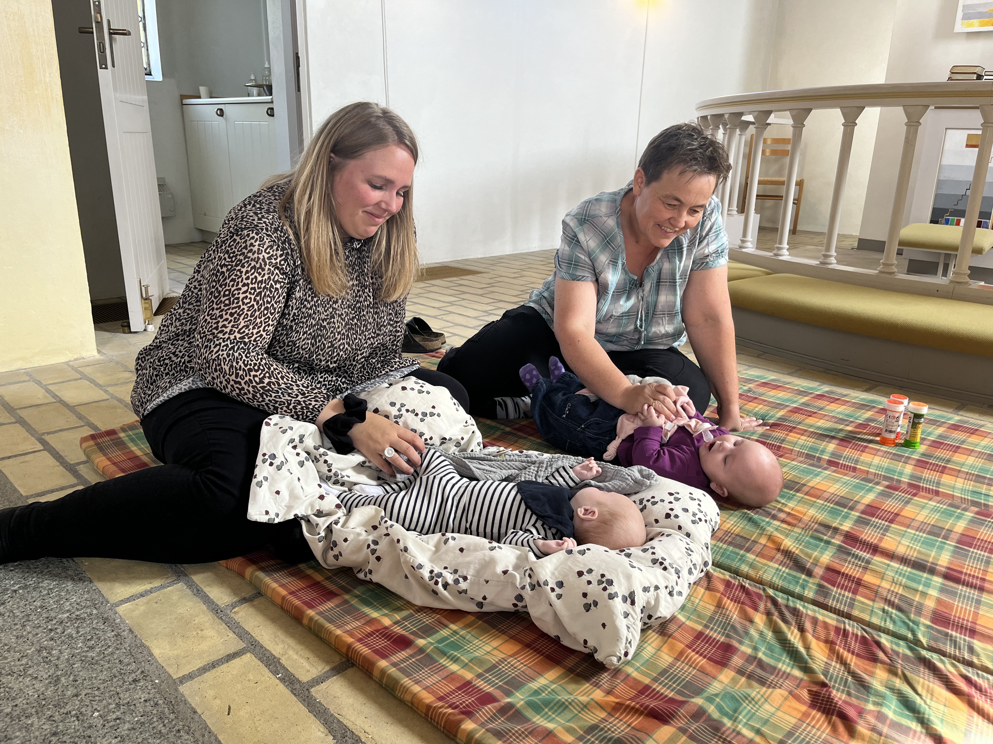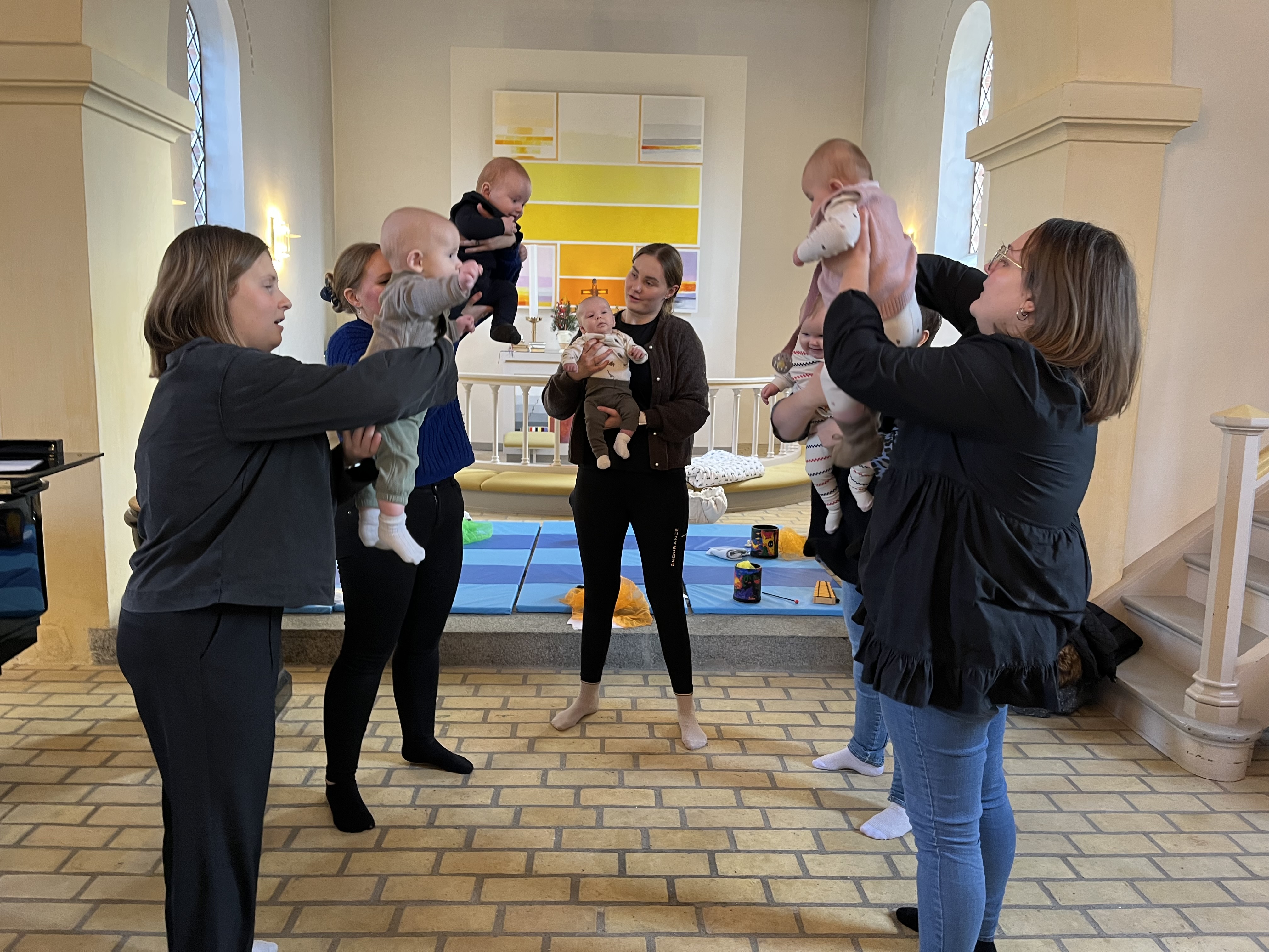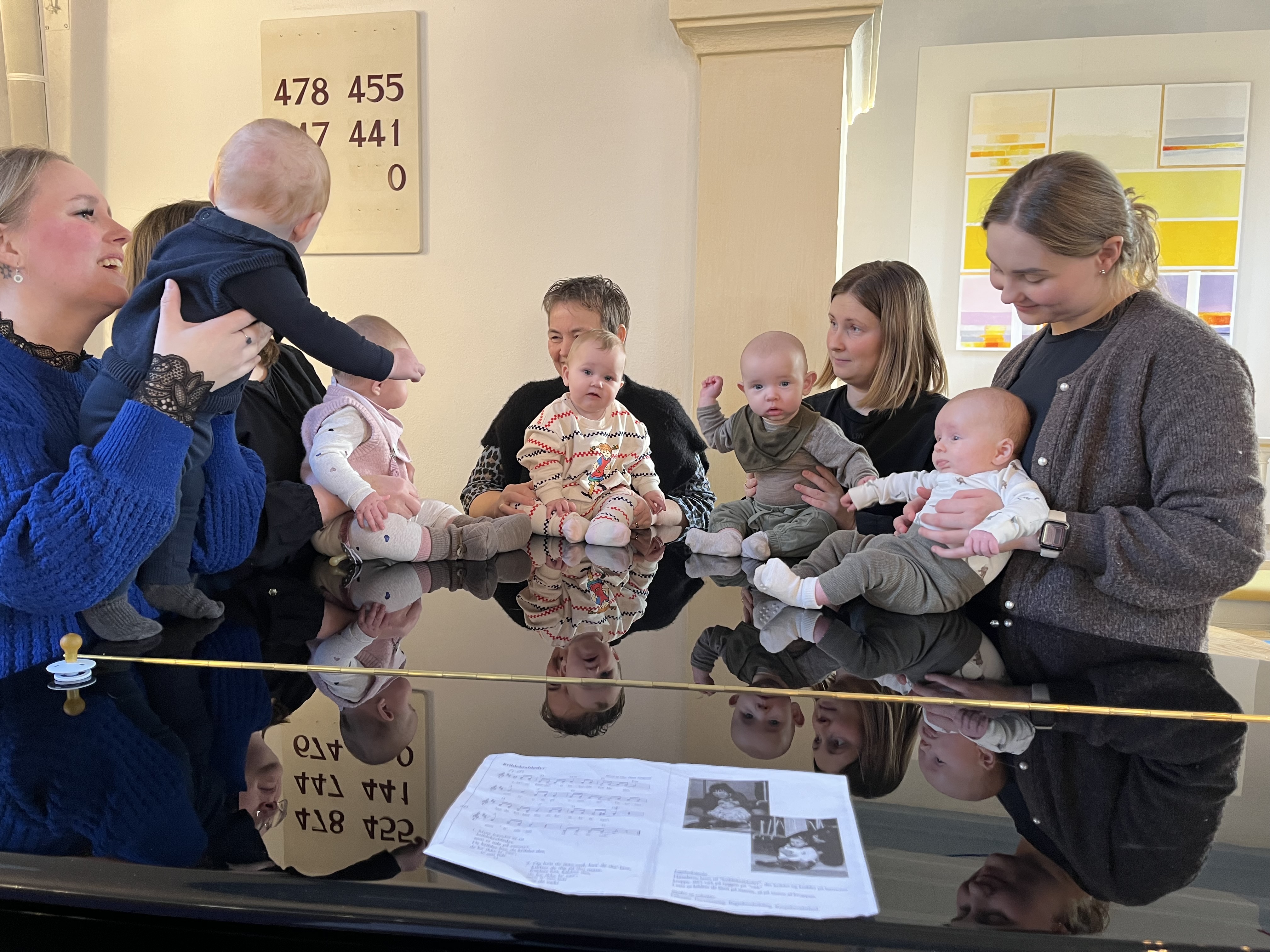 Vi synger både salmer og børnesange, laver små bevægelser og bruger enkle instrumenter, tørklæder og andre sanseindtryk. Alt sammen styrker det båndet mellem barn og voksen og giver en tryg og meningsfuld stund sammen.