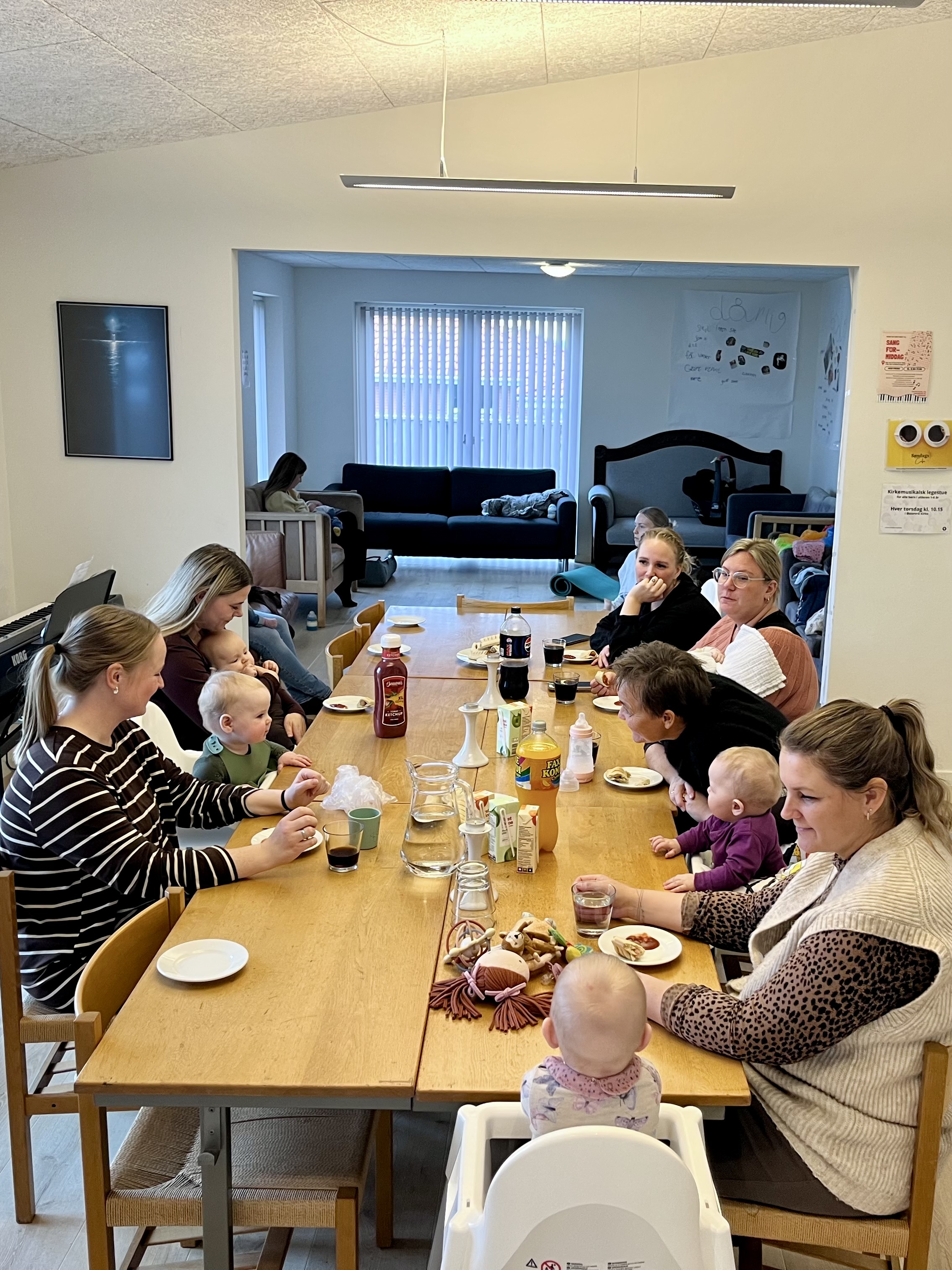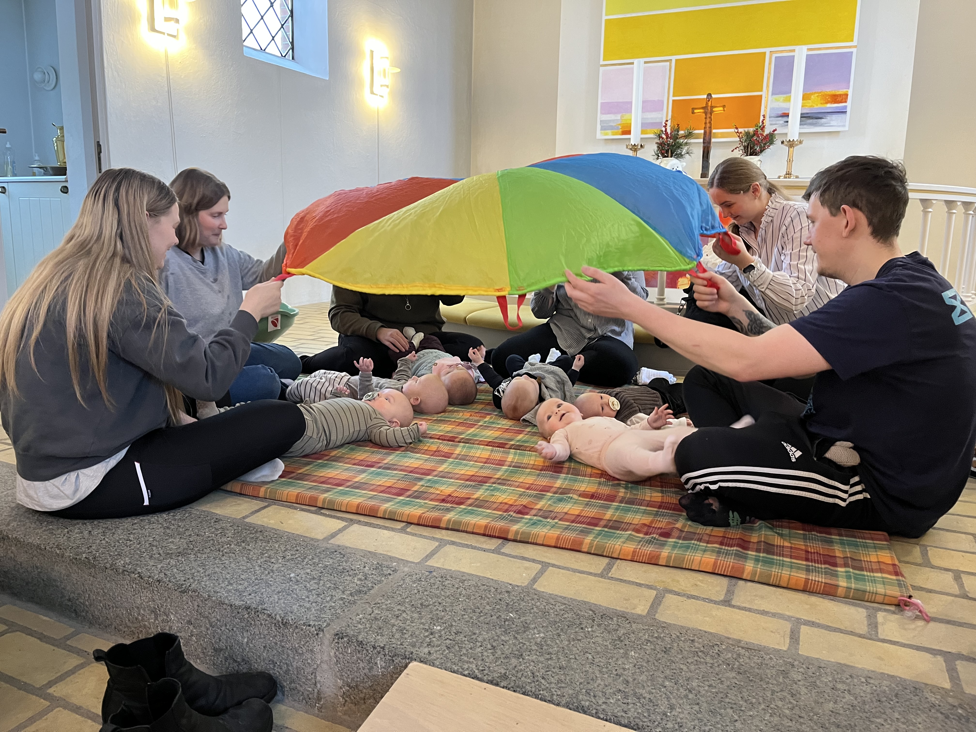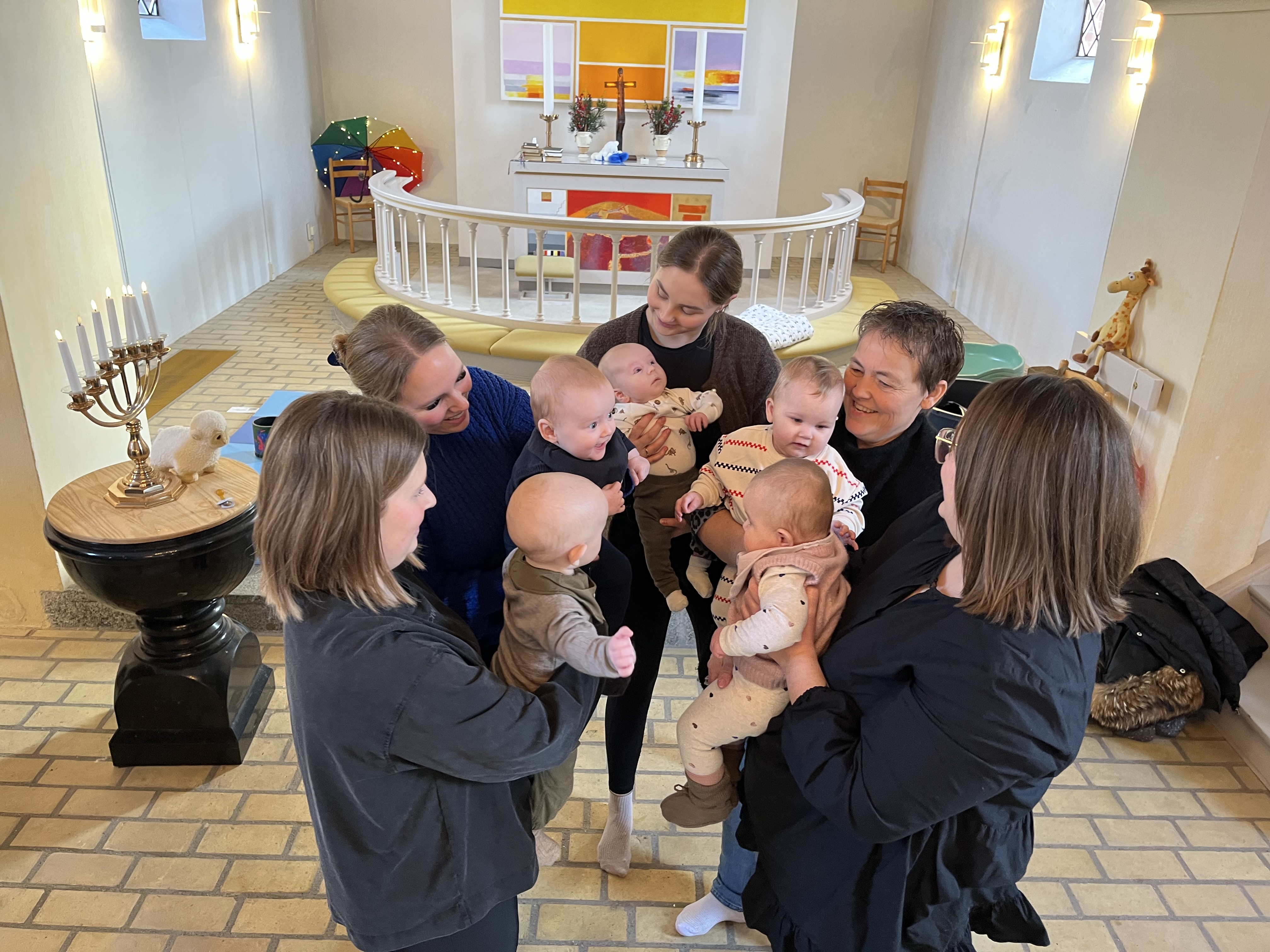 Vi synger både salmer og børnesange, laver små bevægelser og bruger enkle instrumenter, tørklæder og andre sanseindtryk. Alt sammen styrker det båndet mellem barn og voksen og giver en tryg og meningsfuld stund sammen.