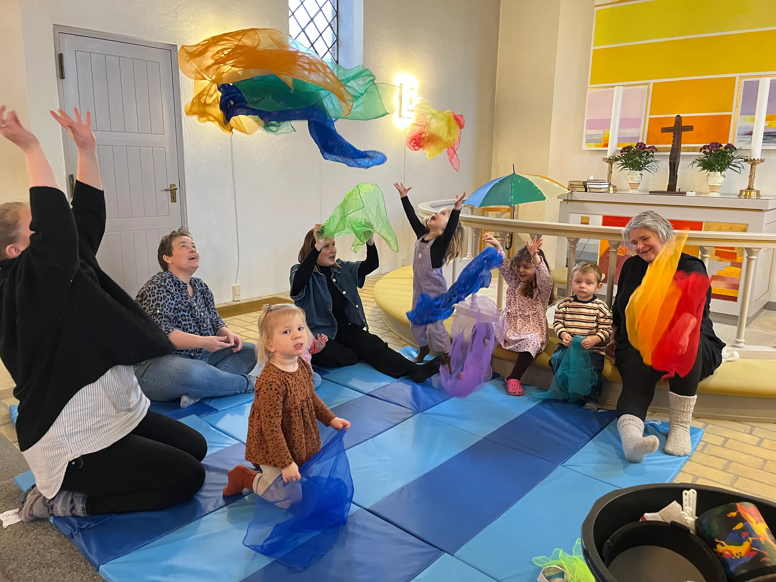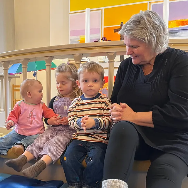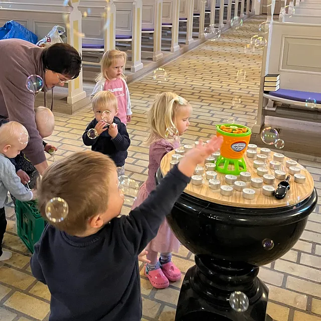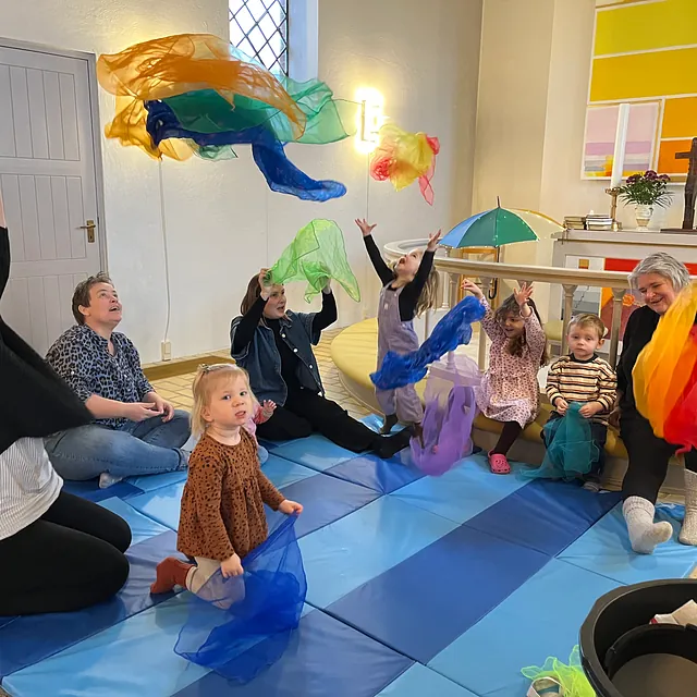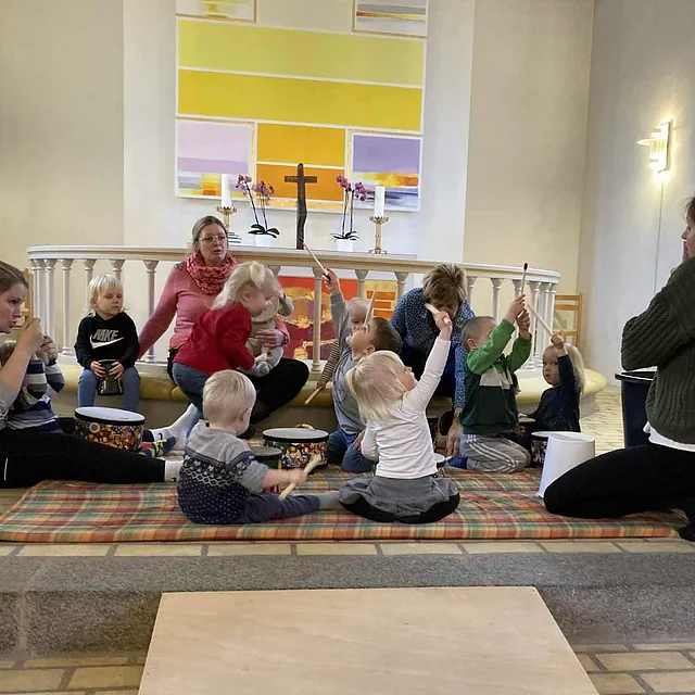 Velkommen til kirkemusikalsk legestue – et hyggeligt og sjovt fællesskab for børn i alderen 1–5 år og deres voksne.