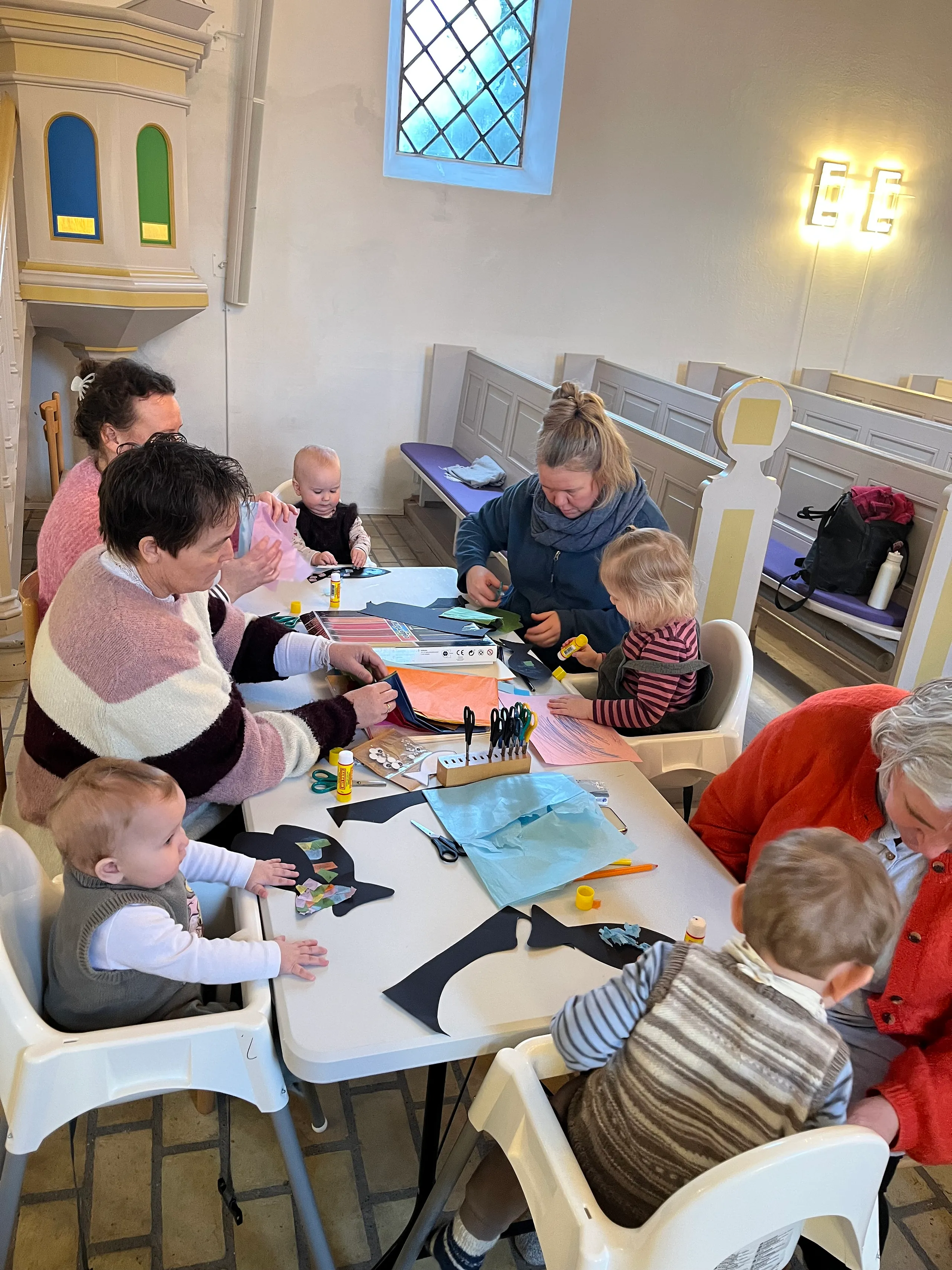 Efter den musikalske del spiser vi vores medbragte madpakker sammen, og bagefter er der fri leg for børnene. Vi afslutter fælles i kirken med vores farvelsang og beder Fadervor.