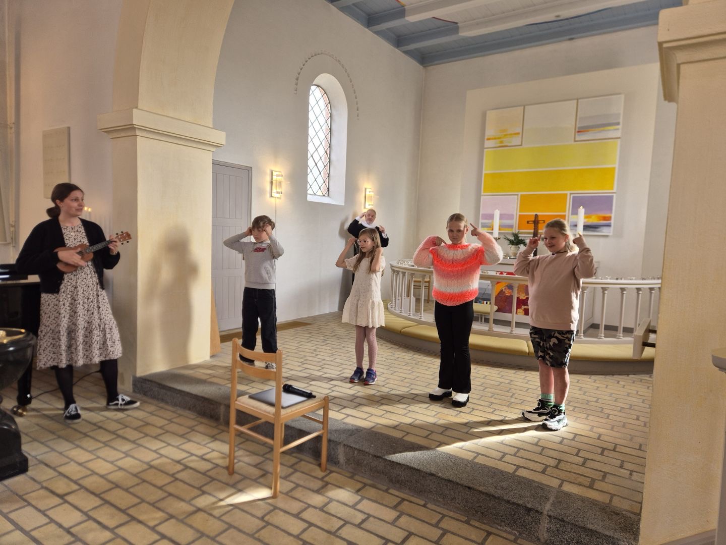 Forløbet afsluttes med en festlig familiegudstjeneste, hvor børnene stolt kan vise noget af det, de har lavet.